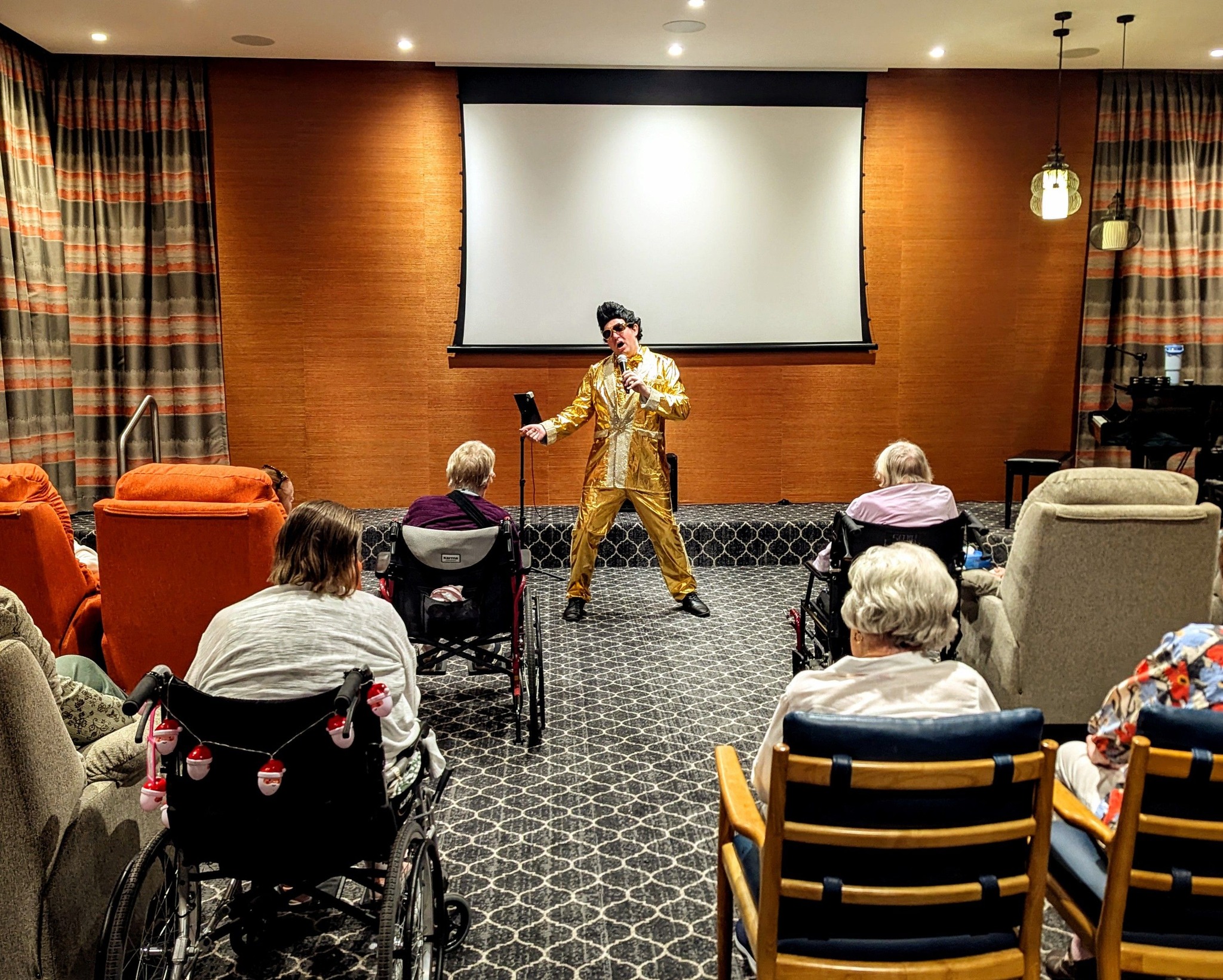 From swingin' Sinatra to Singin' In The Rain, Dylan will put a smile on your face and a song in your heart. Dylan provides a kind and inclusive space for residents, staff and family members alike to rediscover the joys of communal singing and movement.